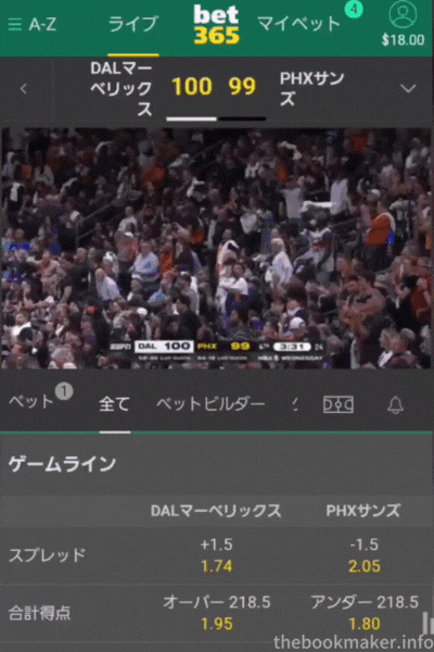 もし、画質の荒さが気になる場合は、bet365がおすすめです、こちらは対応試合数が少ないものの、有料サイト並みの画質の良さで人気です!